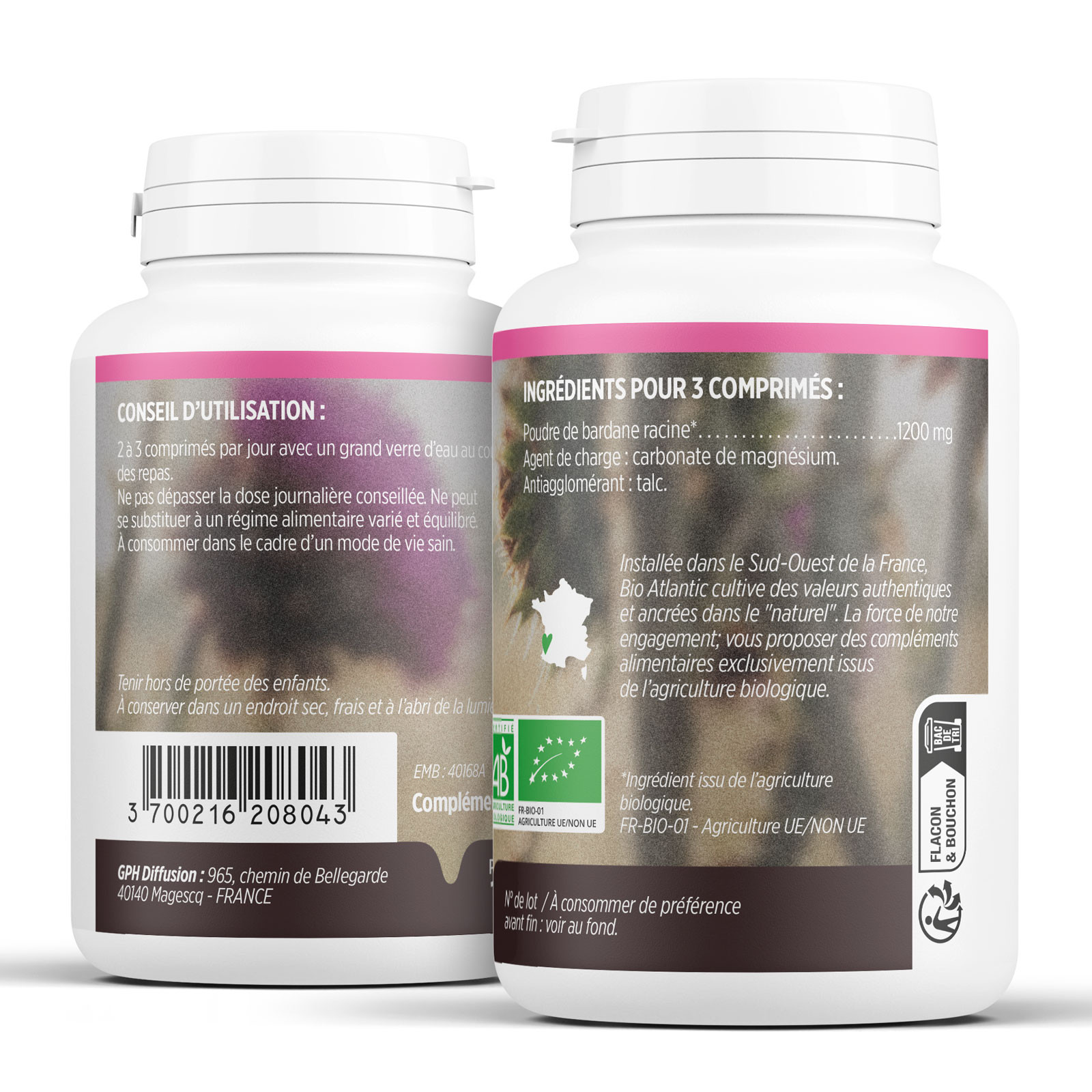 Bardane bio: comprimés naturelles de la bardane pour améliorer votre bien-être. Boite de 200 comprimés de 400mg de bardane.